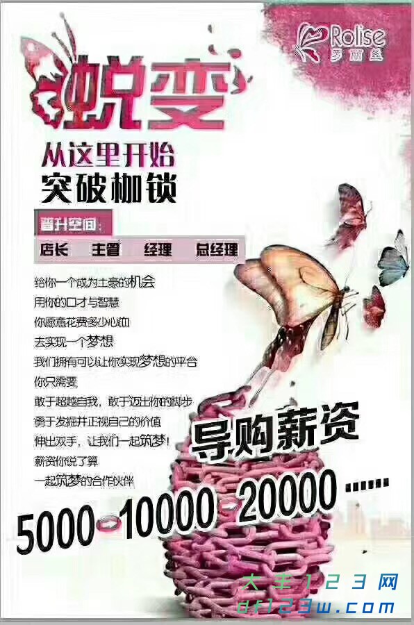 工作地点:大丰商业街罗丽丝内衣专卖店(通灵珠宝对面)